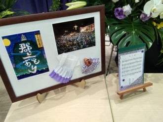 故人様がよくご夫婦で郡上踊りに行っていたと娘様からお聞きしましたので、思い出の光景を色紙にまとめお供えさせていただきました。