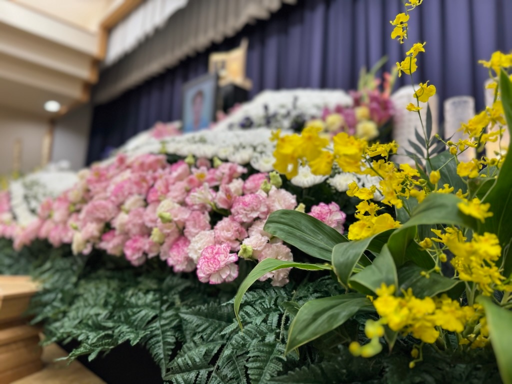 優しく咲き誇る花々は、故人様のお人柄を映し出すように あたたかく会場を包んでおります。