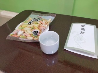 ご家族様からは果物のお供えが届けられ、故人様がお好きだったあられも枕元にご準備致しました。