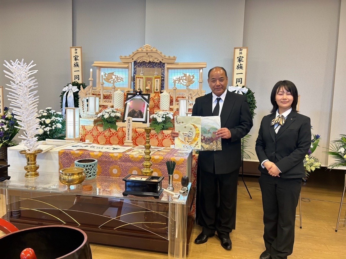 最後に祭壇前にて喪主様とお写真を撮らせていただきました。