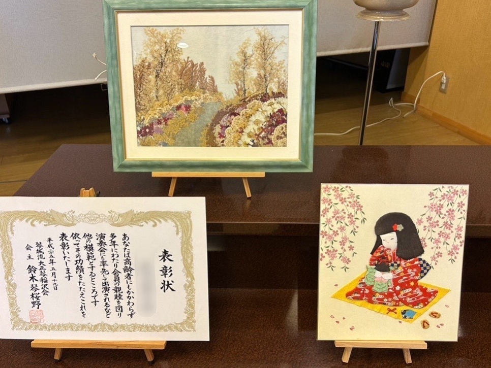 故人様は趣味で押し花絵や木目込みのパッチワーク作品を作られていらっしゃったそうです。