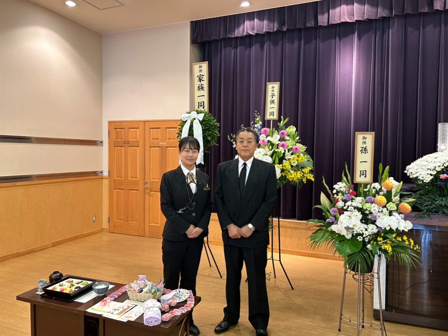 最後に祭壇前にて喪主様とお写真を撮らせていただきました。