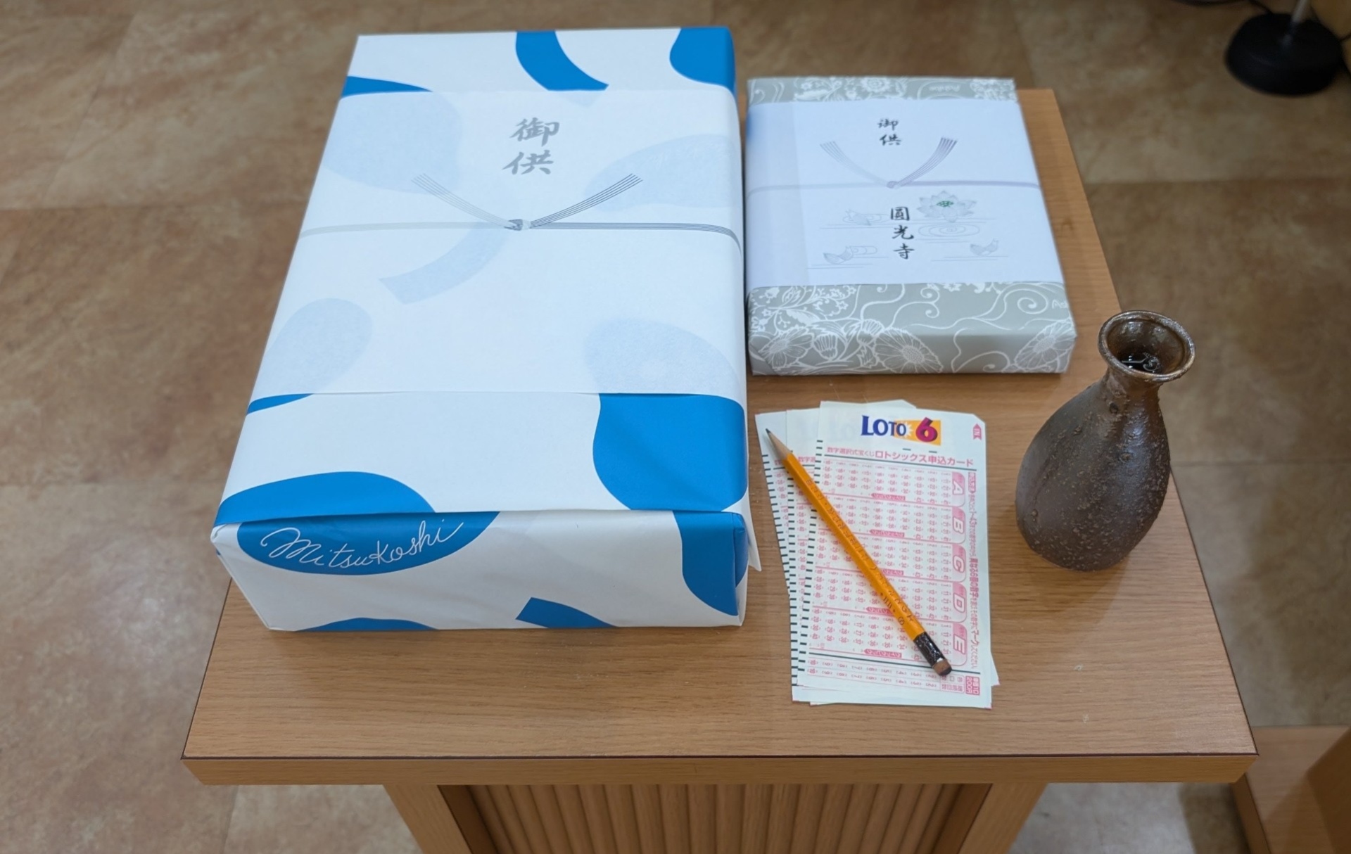 故人様は生前お酒が好きで宝くじやロト6を楽しまれていたそうです。