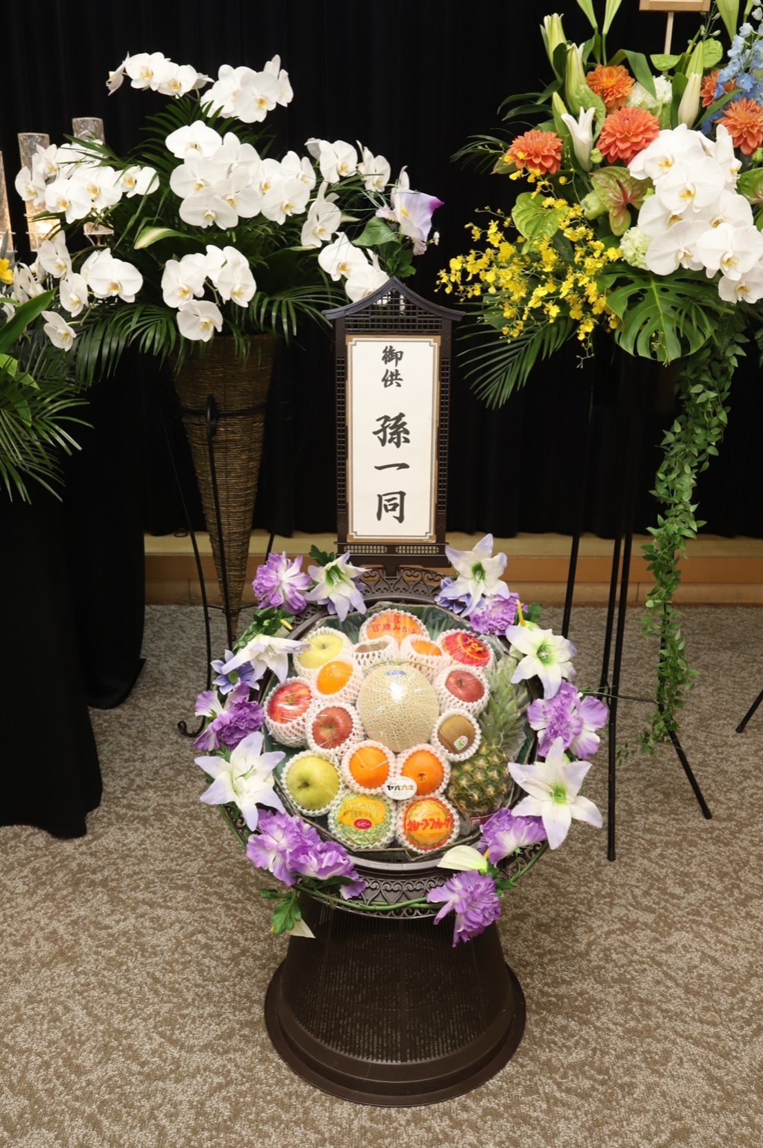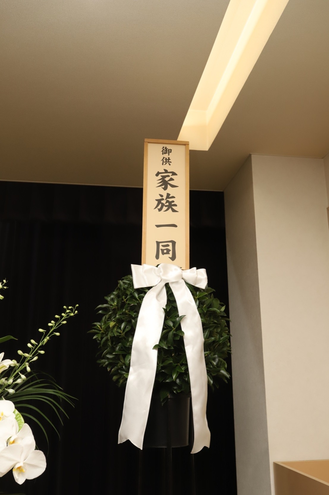 ご親族様からのるりはという枕花と供花のお供えでございます。