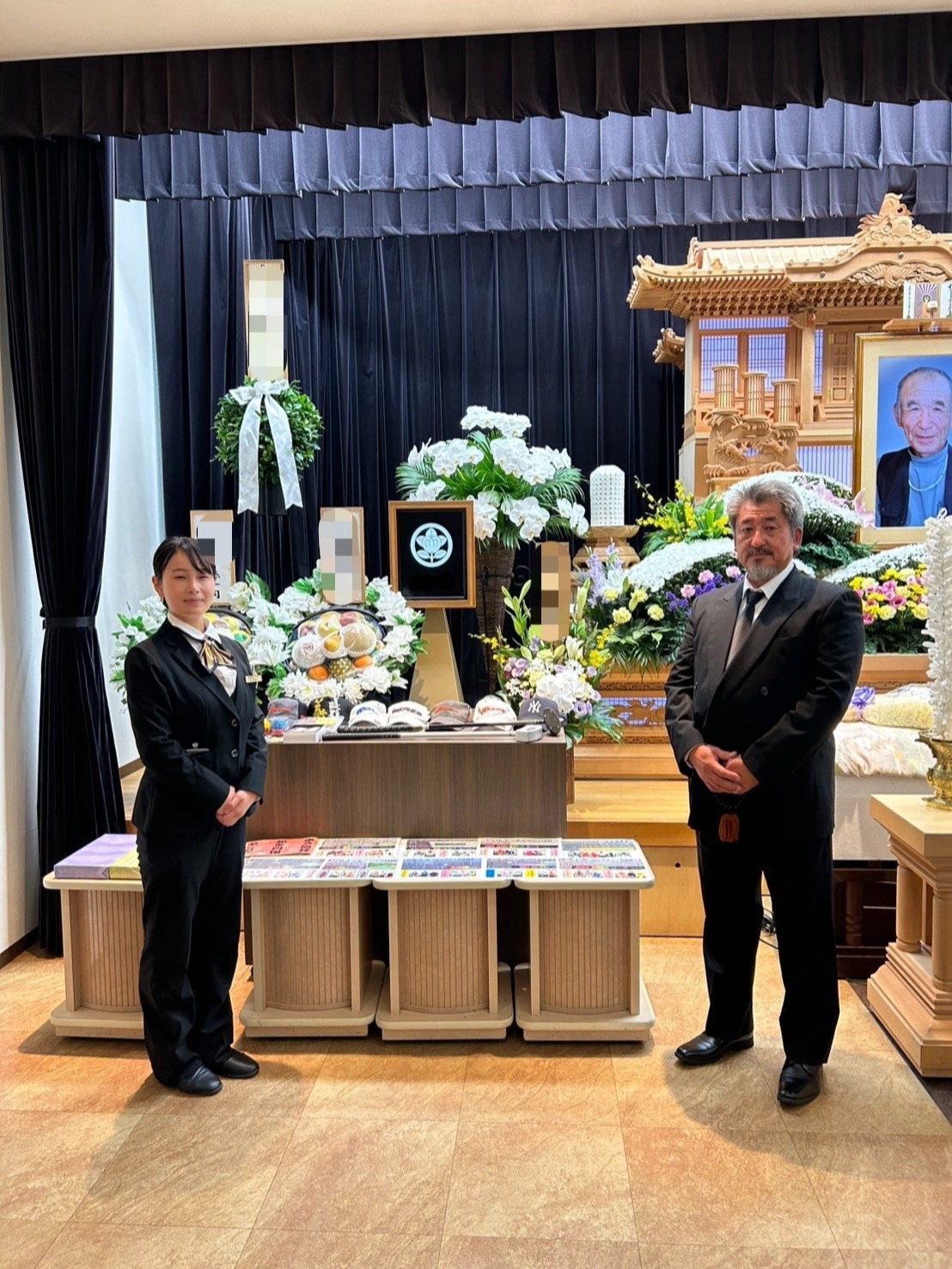 最後に祭壇前にて喪主様とお写真を撮らせていただきました。