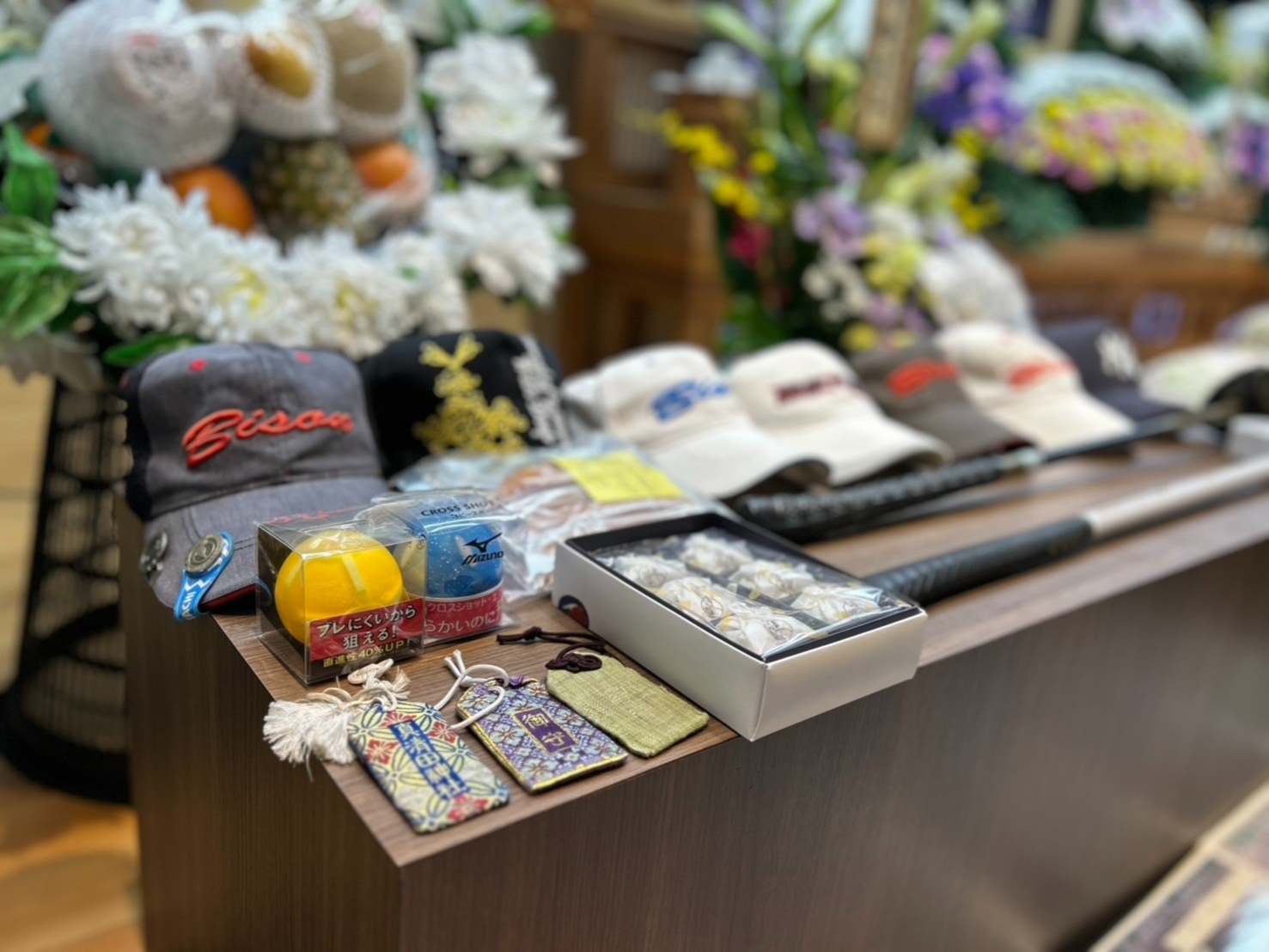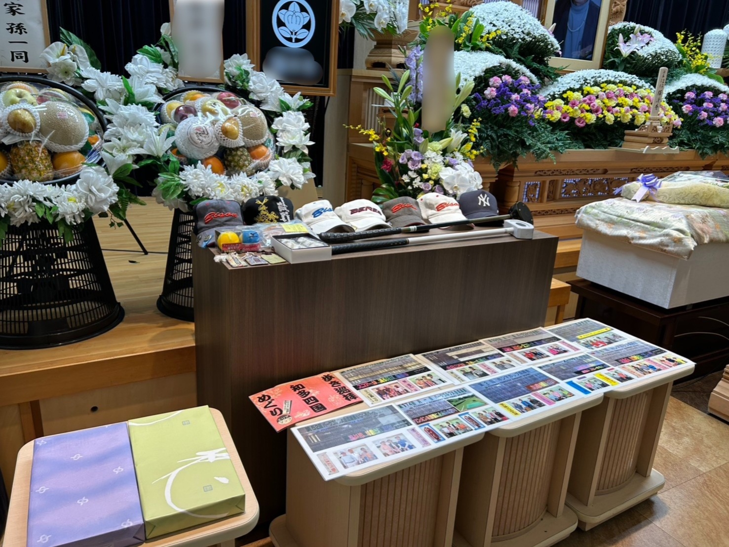 帽子やお菓子はお別れのお時間に皆様方の手でお手向けいただきました。