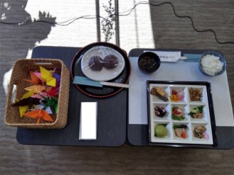 ご家族様が折られた鶴や出立ちのお食事、