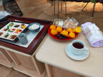 ご遺族様は故人様がお好きだったミカンや柿、おせんべいなどをたくさんご用意されました。ご葬儀前に皆様でいれていただいたコーヒーをお供えして最後のお別れをなさいました。