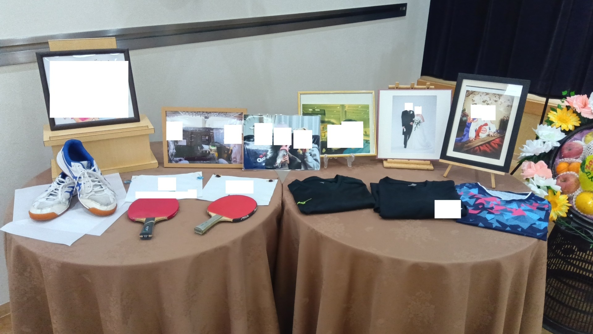 故人様は卓球クラブに所属しており、ウェアやラケット、ご夫婦での思い出の写真など飾られました。
