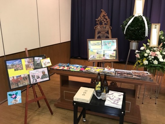 祭壇の隣には故人様の思い出のお写真や作成品をお飾りしました。ご遺族の皆様は、故人様の在りし日のお姿を偲ばれ、思い出話しをしていらっしゃいました。