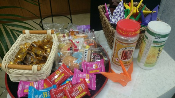 故人様がお好きだったとお伺いした、「和菓子」「チョコレート」「焼酎」をお供えさせていただきました。皆様に折っていただいた折り鶴も色とりどりで華やかです。