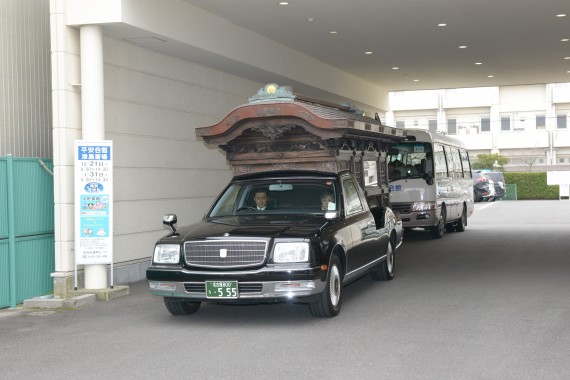 生前故人様が可愛がっていたお孫さんたちに、霊柩車までお柩をつっていただきました。