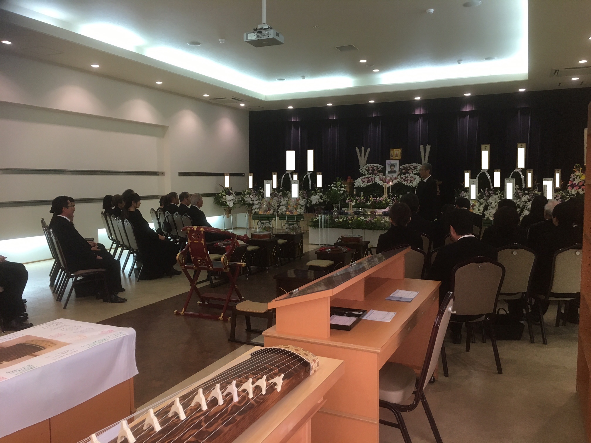 故人様は琴の先生をされていらっしゃりご愛用の琴をお飾りし式場では演奏されているCDをながしました。