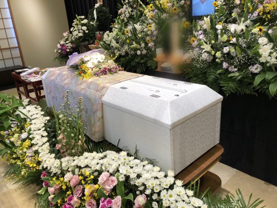 お柩の上にも、ご家族様の思いを花束にしてお飾りしています。