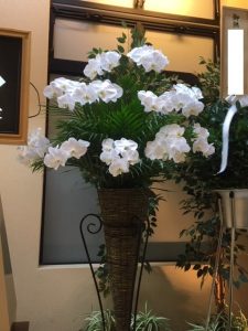 祭壇左右には胡蝶蘭が飾られており、華やかな祭壇をさらに左右に広く見せることが出来ます。