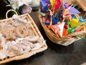お供えいただいたお菓子や折り鶴は、すべてお棺の中にお手向けいただきました。
