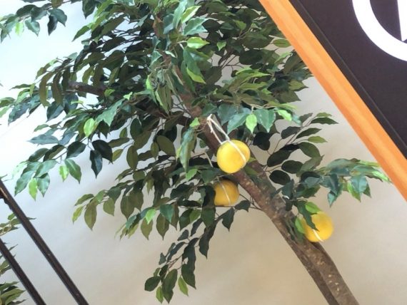 祭壇の横のお庭の木には、故人様がお好きで育てていらっしゃった「文旦」を吊ってみました。式場にいながら、好きな文旦に囲まれているようにも感じていただけます。