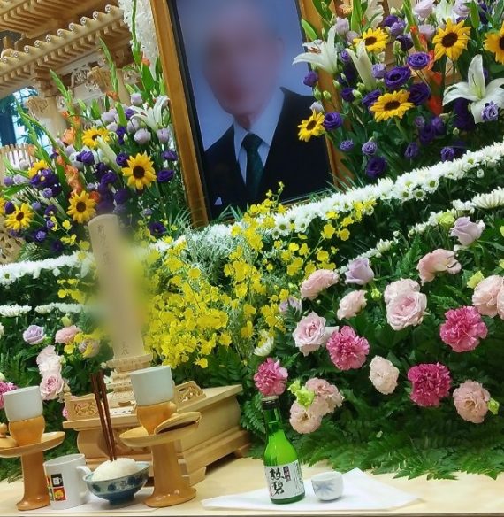 夏の季節らしく中央にはひまわりが飾られ、故人様を鮮やかに