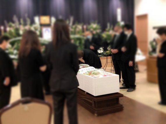 葬儀式後、お柩の蓋を開きまして最後のお別れの時間でございます。