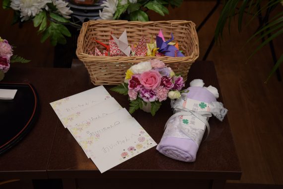 祭壇の近くには、お孫様からのお手紙、折り鶴などをお供えいただきました。