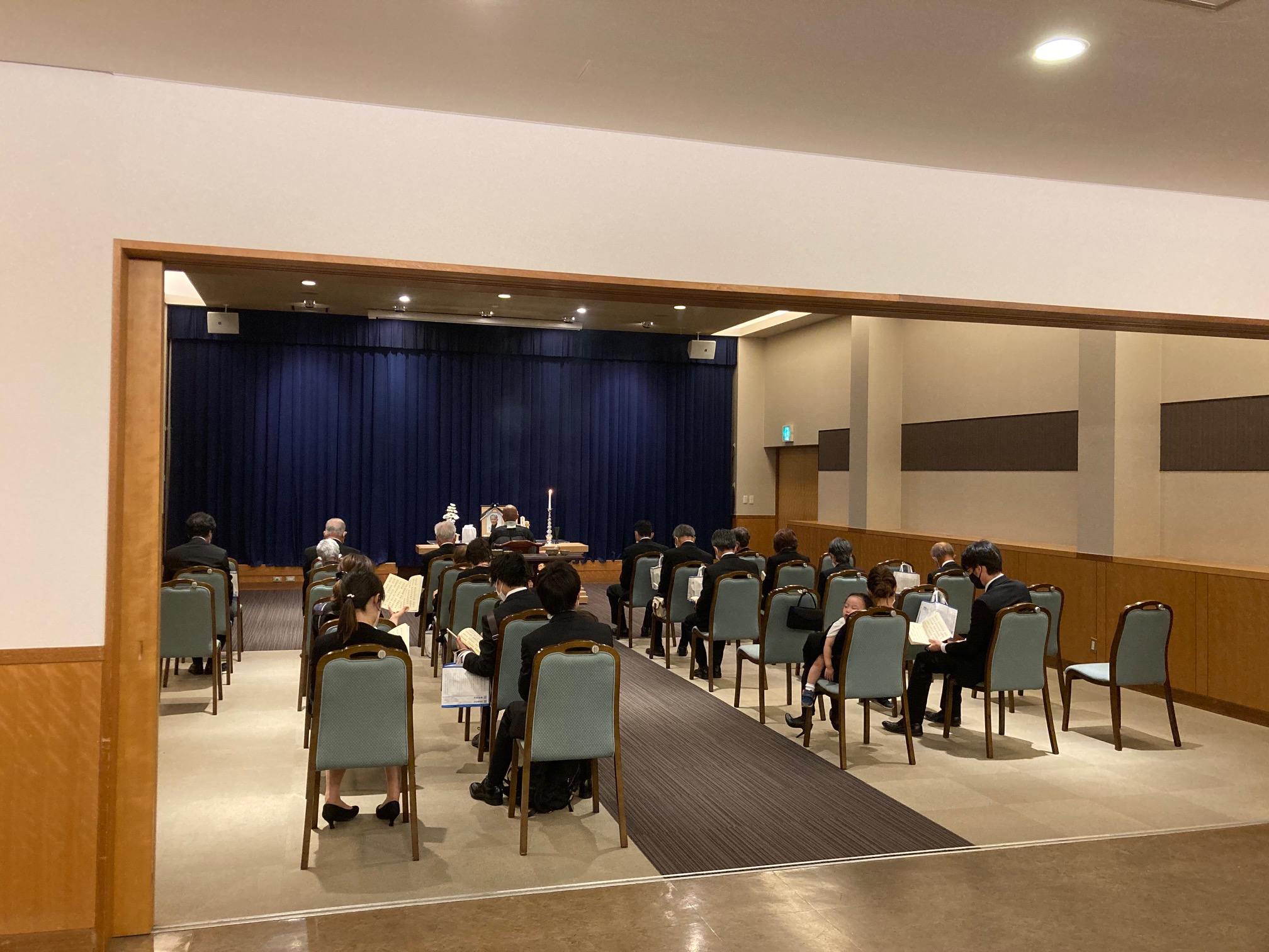 火葬後は会館に戻られて初七日法要が営まれました。本来であれば7日後に行う式典ですが、最近では葬儀日当日に火葬場から戻って行うケースが一般的になりつつあります。