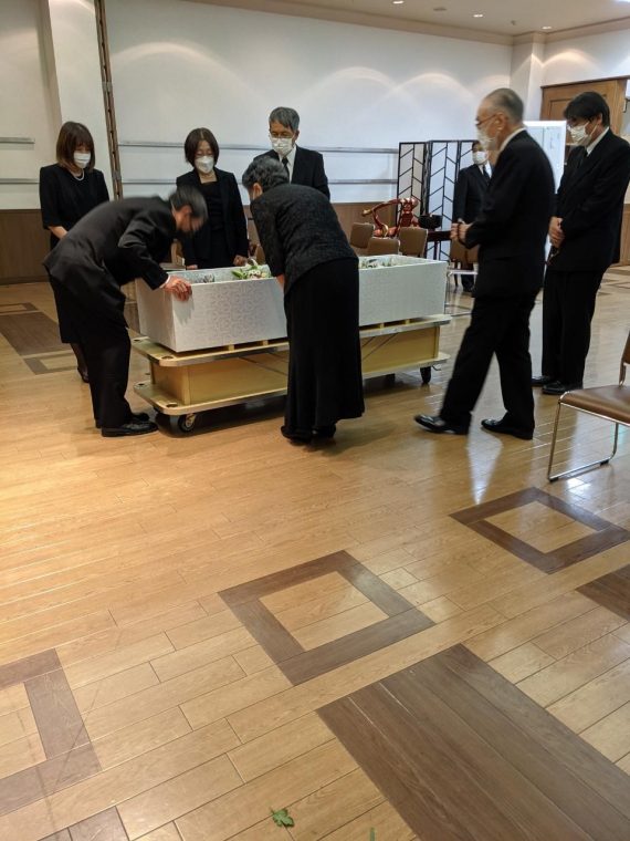 通夜の様子からお別れの様子です。コロナ禍ではありましたがご遺族様・ご親族様にお集まり頂き家族葬として温かいお式です。