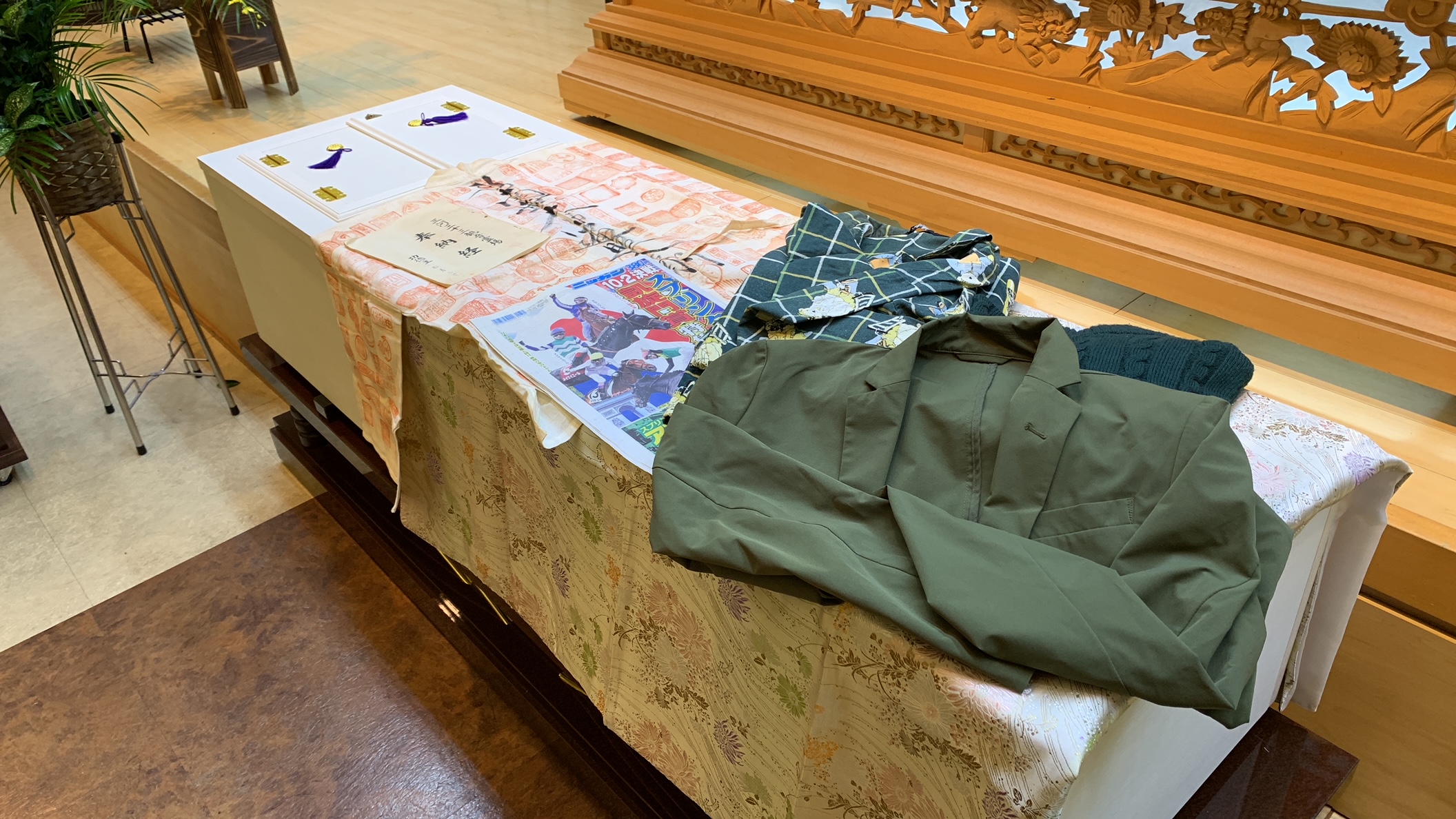 お柩の上には生前着ていらっしゃったお洋服をお飾りさせていただきました。