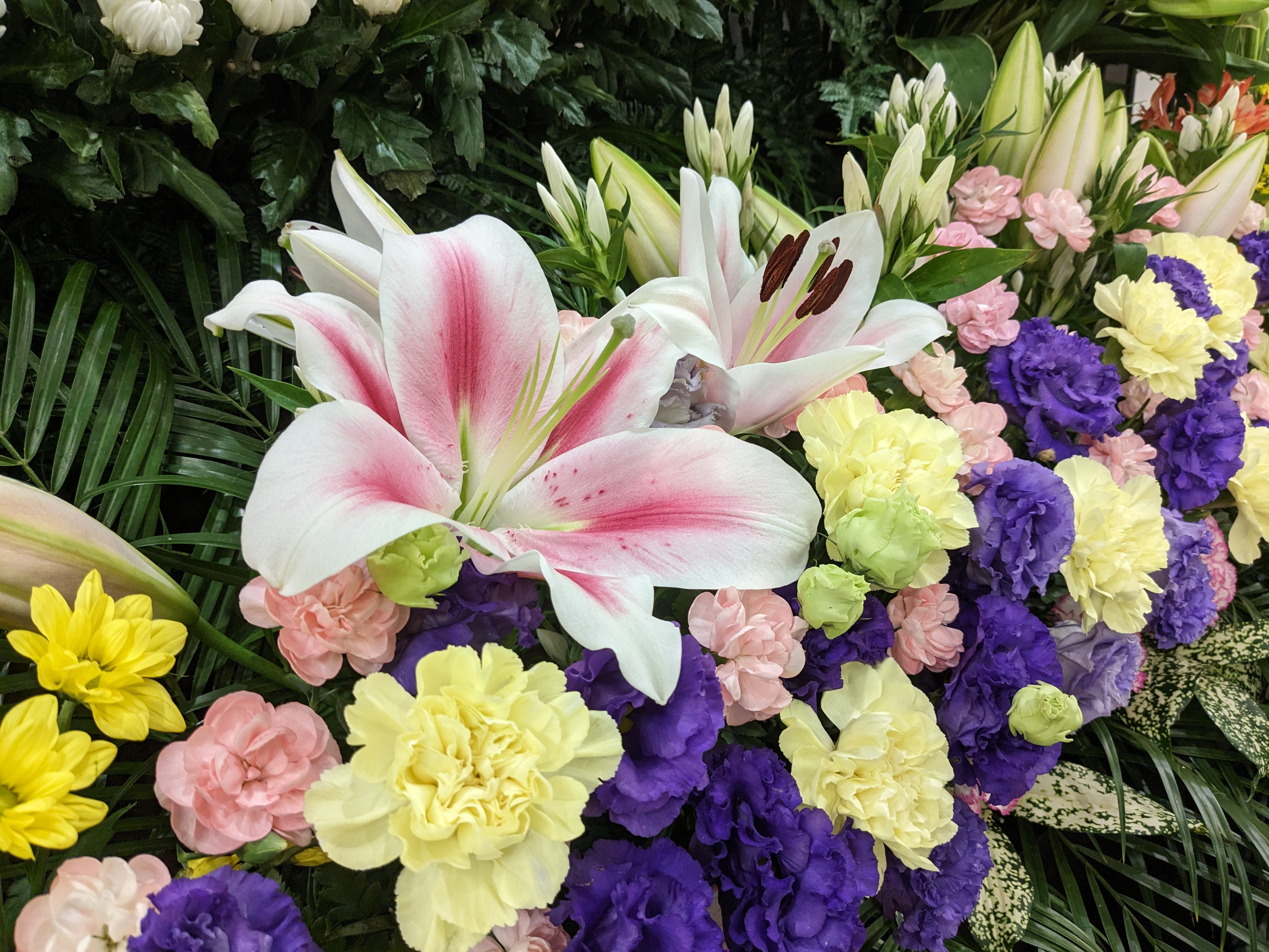 お棺の上にはお花と棺掛けを掛けさせていただきました。