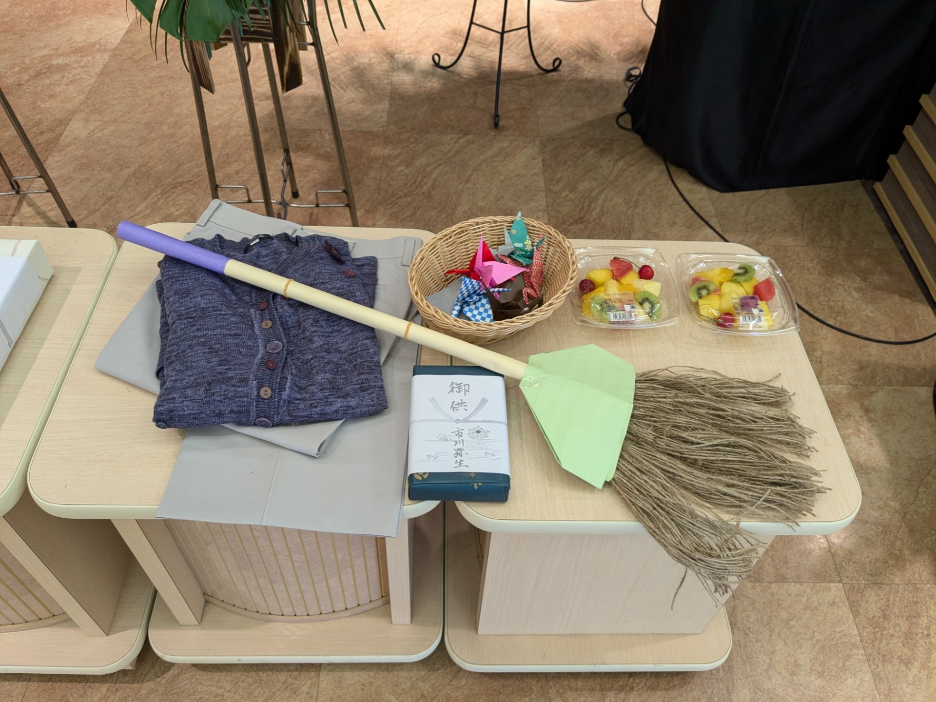紙でほうきを作りお供えいたしました。