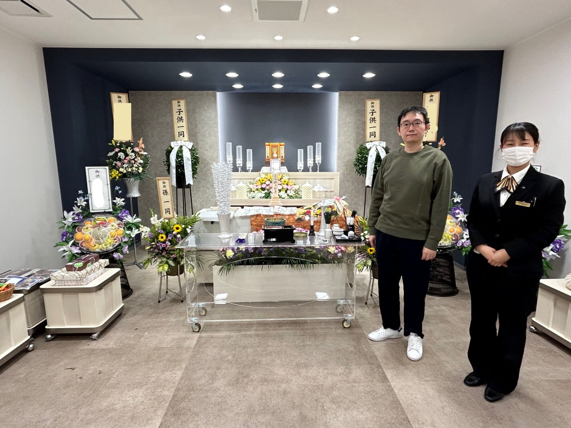 最後に祭壇前にて喪主様とお写真を撮らせていただきました。