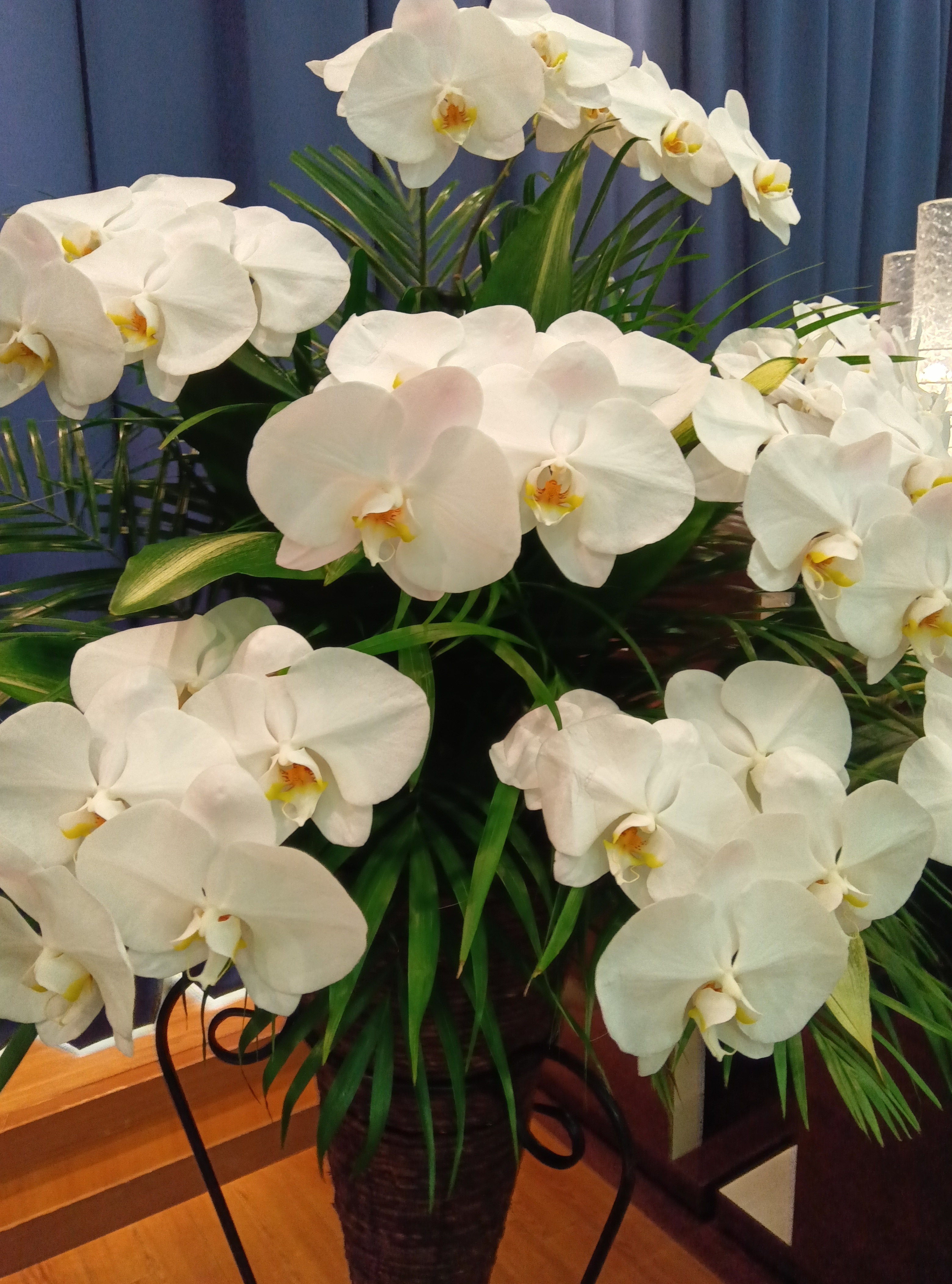こちらの花祭壇名前は "時" と申します。故人様の想いでの写真を式場に飾り、皆様で偲んでいただきました。