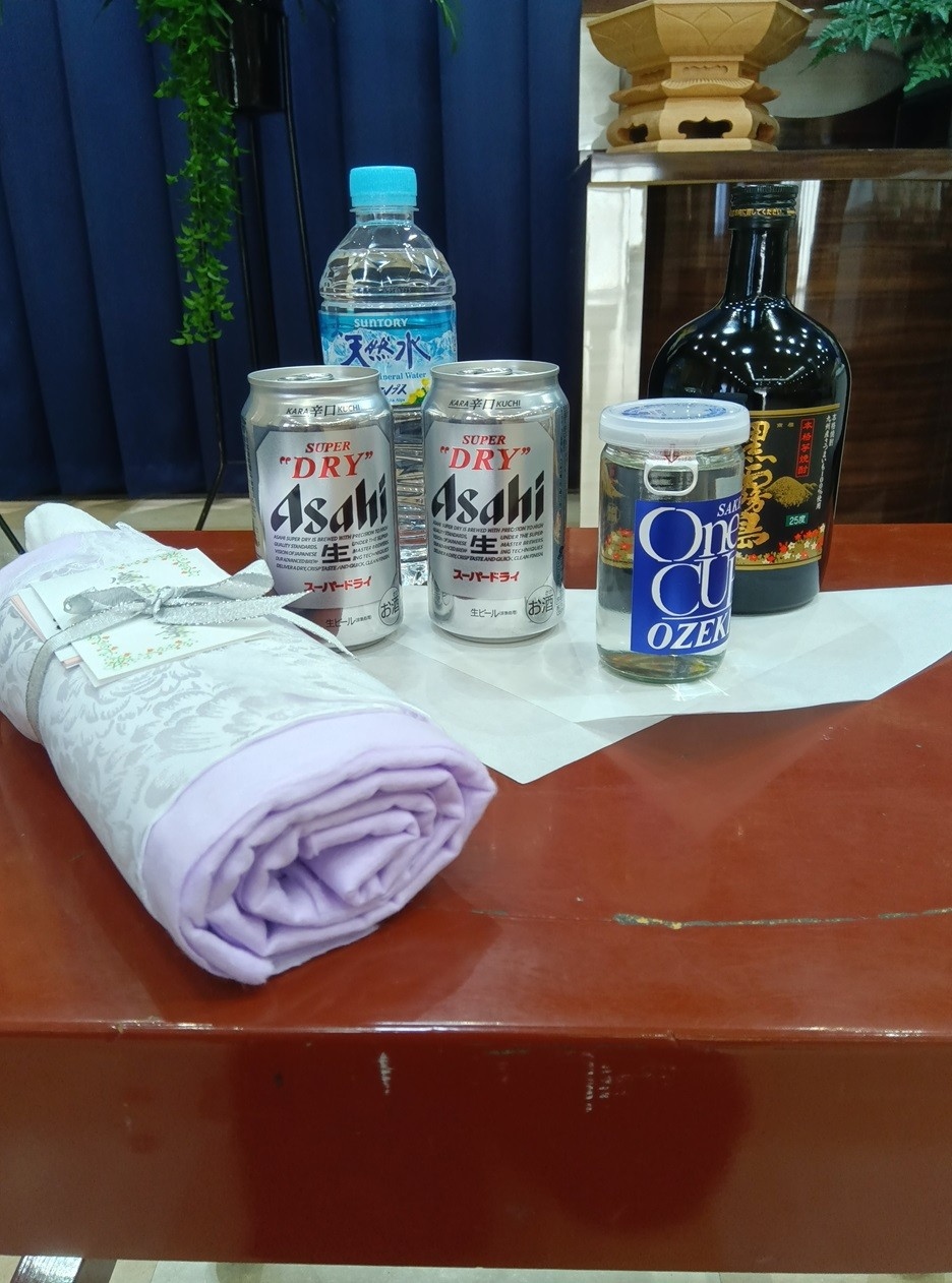 故人様がお好きだったお酒をお供えしました。