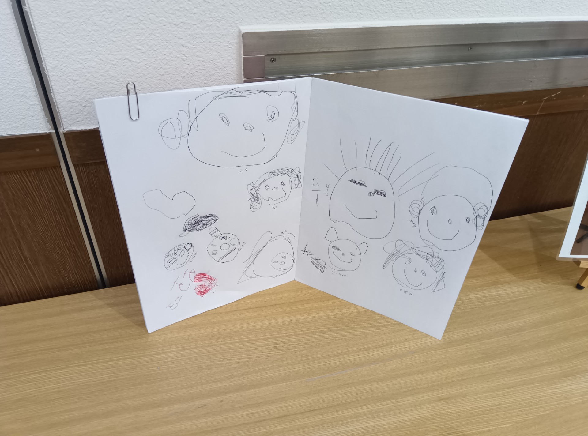 ひ孫様が書いた似顔絵です。とても愛らしいですね。式場がホ―ムの様に写真をたくさん飾っていただきました。
