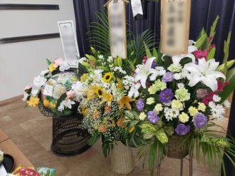 ご親戚様やお取引先様などたくさんの方々からお供えの花が届けられとても華やかな雰囲気になりました。