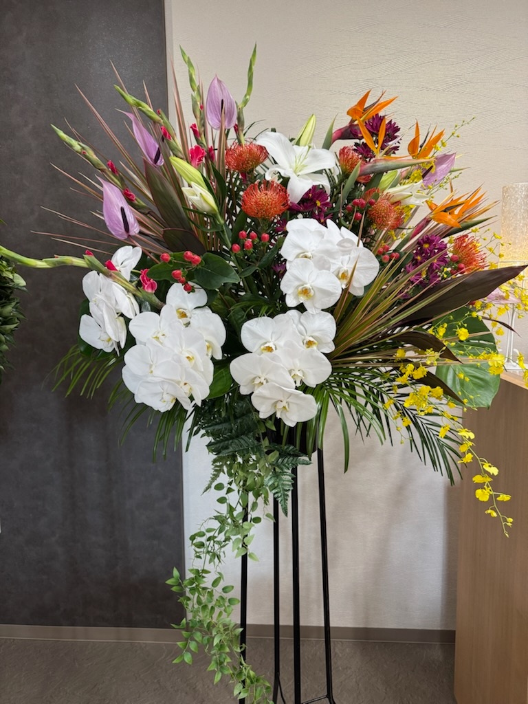 季節は秋。秋らしい色合いの枕花をお供えされました。