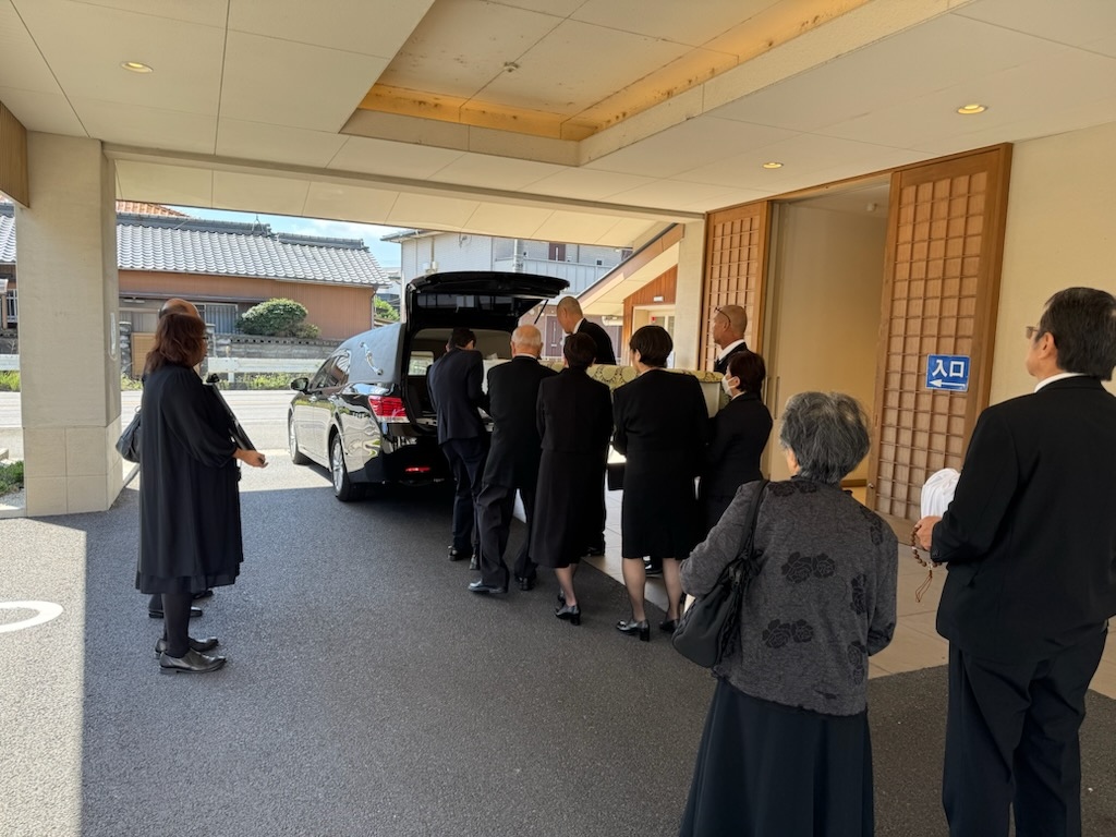 ご出棺となりました。今までの感謝の気持ちを胸に お見送りされました。