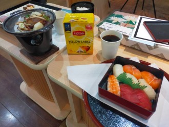 故人様のお好きなコーヒーや紅茶、お寿司など沢山ご用意されお別れの際にお手向けされました。