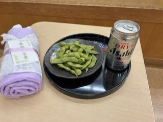 故人様がお好きだったビールは体調との相談でなかなか飲めなかったそうです、枝豆と合わせてお供えされ、お柩にお手向けしてお別れをされました。