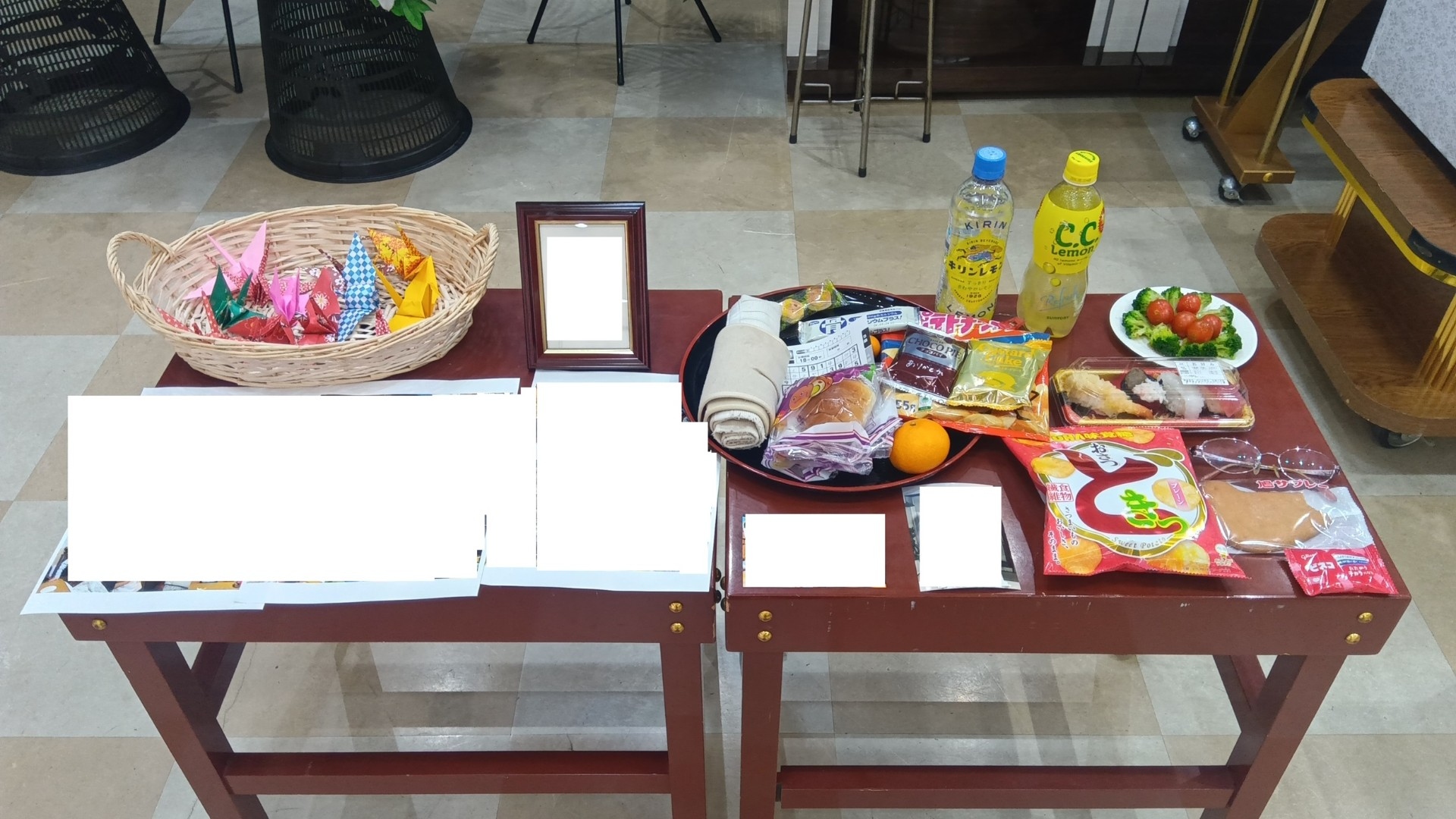 また、故人様のお近くには皆様で折られた折り鶴やお菓子、