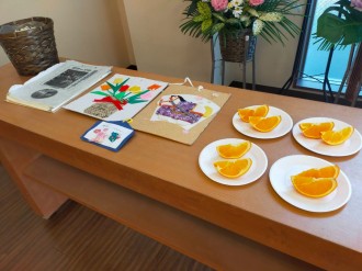 ギターのスコアや切り絵など故人様の趣味の物や、大好きだったオレンジなどをお手向けされ最後のお別れをなさいました。ご遺族ご親戚の皆様方は誠にお疲れ様でございました。