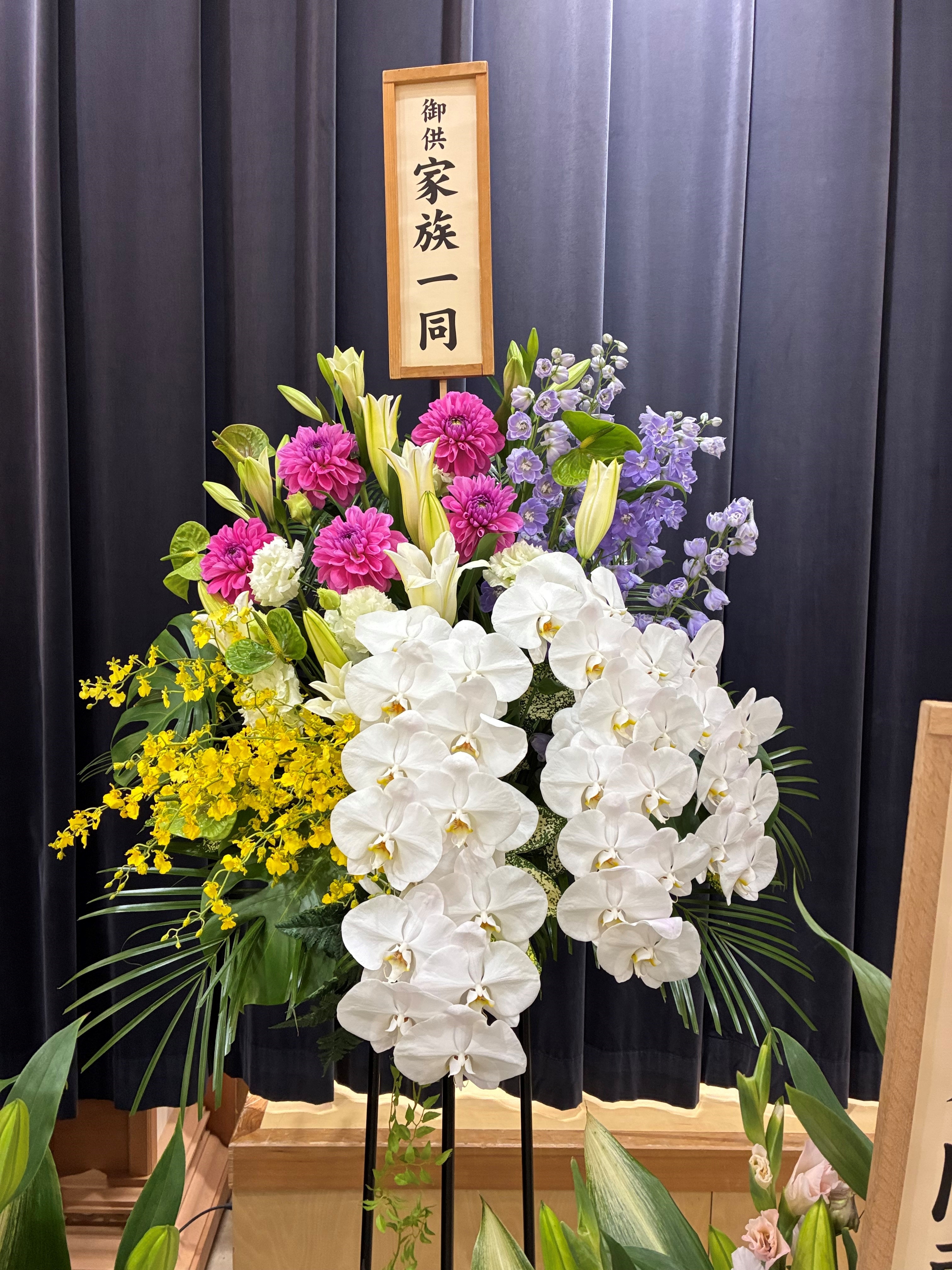 花祭壇ひまわりその横にはるりはが飾ざられています。
