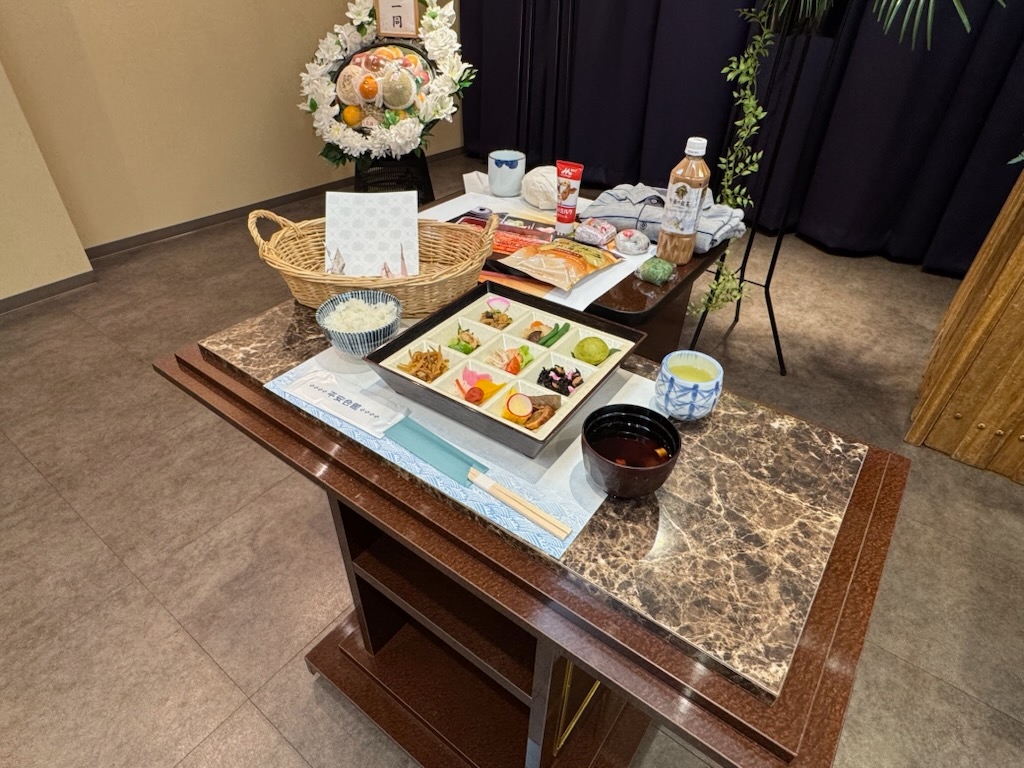 影膳です。葬儀開式前に家族様といっしょに召し上がっていただきました。