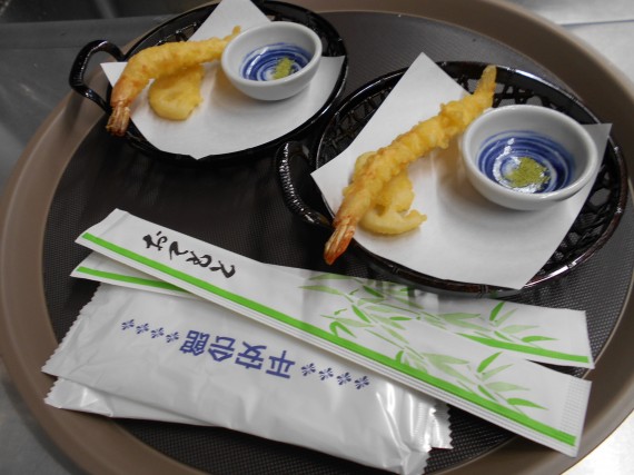 本日の11時~・14時~の時間帯では、会館で作った温かい天ぷらの試食を皆さんに 召し上がって頂きました。