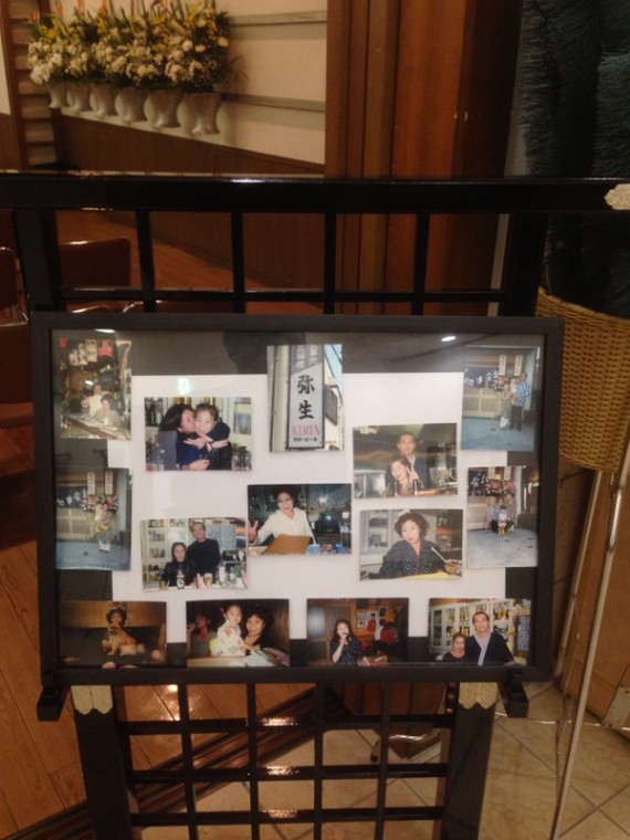 式場後方ロビーには故人様が経営されていました居酒屋の店舗やメニュー表などの仕事場の様子をウエルカムボードにして参列いただいた大勢の方にご覧いただきました。