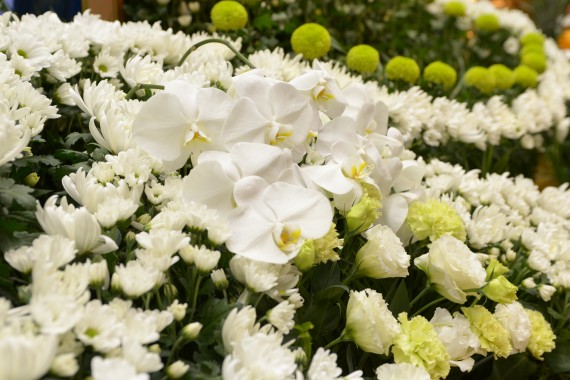 祭壇の周りにはお孫様からのお花など、たくさんのお花が