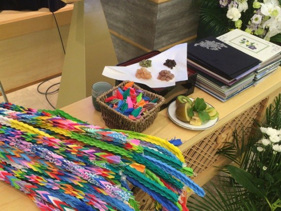 お柩の近くにはご親族様から、たくさんの折鶴をお供えしていただきました。