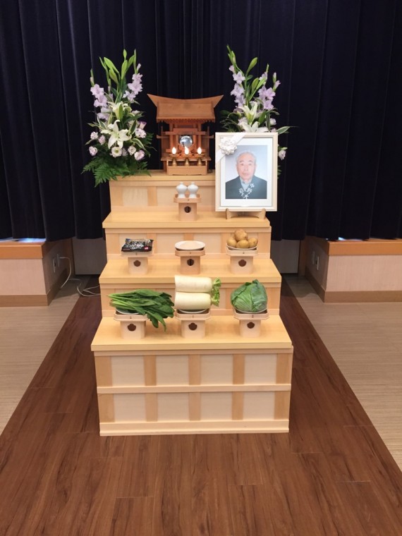 十日祭の祭壇です。御霊うつしの祭壇を使用しています。